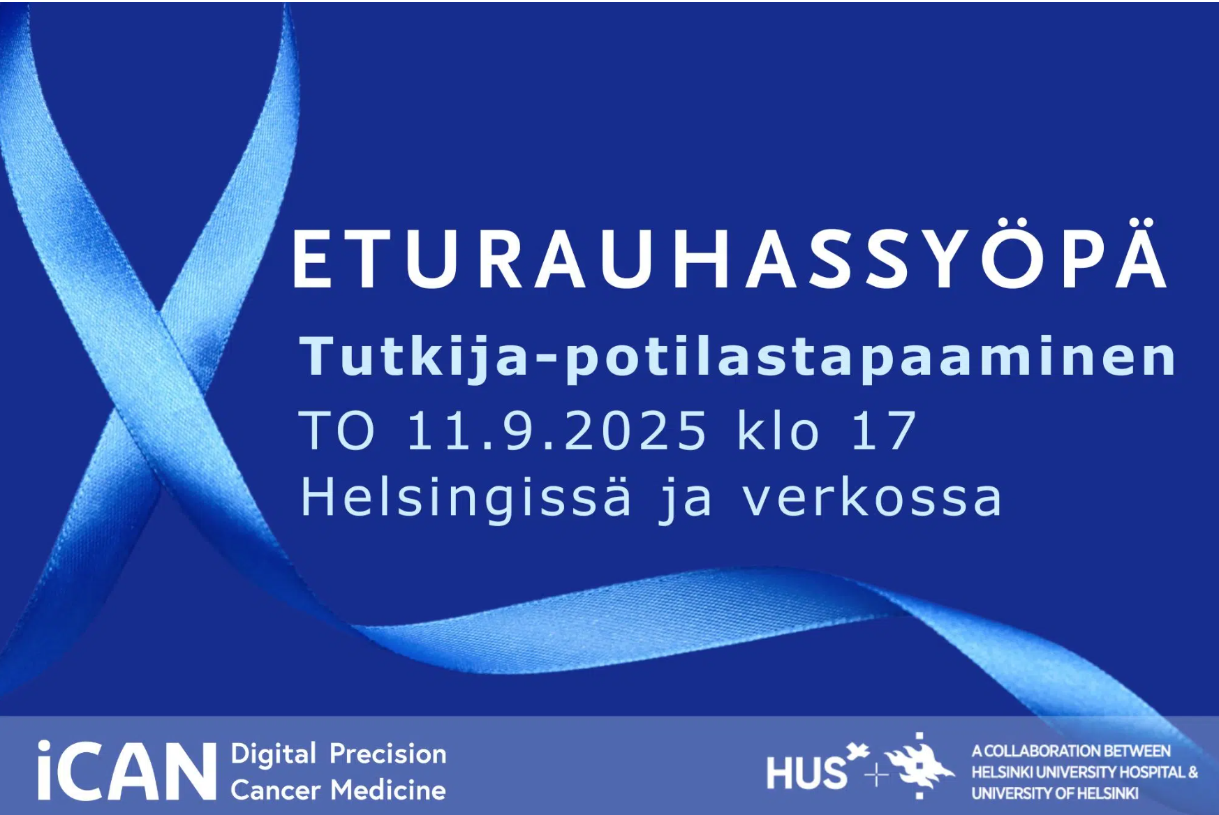 URINA ry ja iCAN järjestää yleisöluennon eturauhassyövästä Helsingissä Meilahden sairaalan kampus alueella. TIlaisuus alkaa klo 16:30 kahvilla ja pullalla. Esitykset alkavat klo 17:00. Tilaisuudessa on mahdollisuus keskusteluun. Tilaisuuden jälkeen on mahdollisuus tutustua tutkimuslaboratorioomme! Pyydämme ilmoittautumisia, niin osaamme varata kahvia ja pullaa oikean määrän! Ilmoittautumalla saat myös linkin, josta pääset halutessasi...